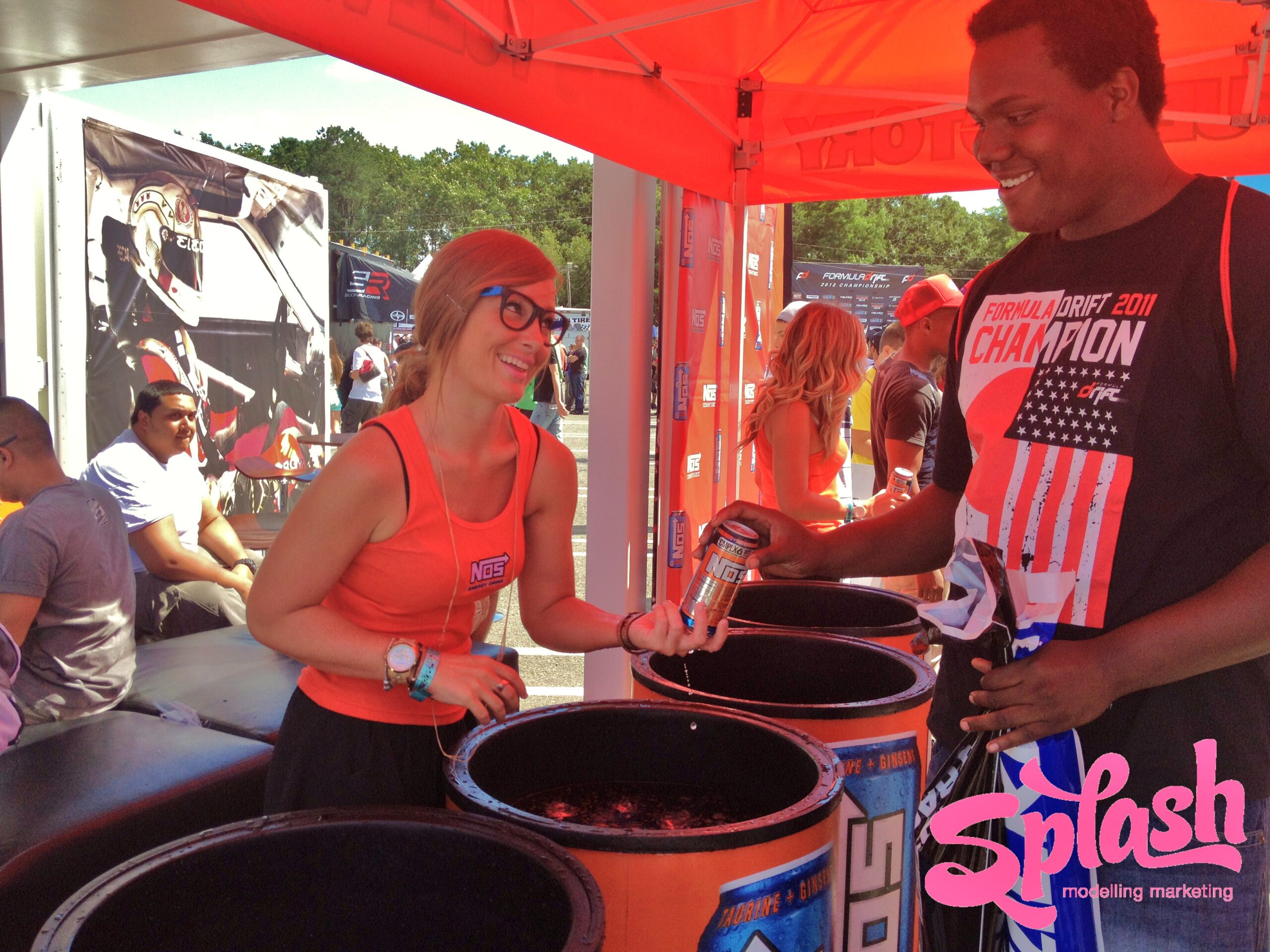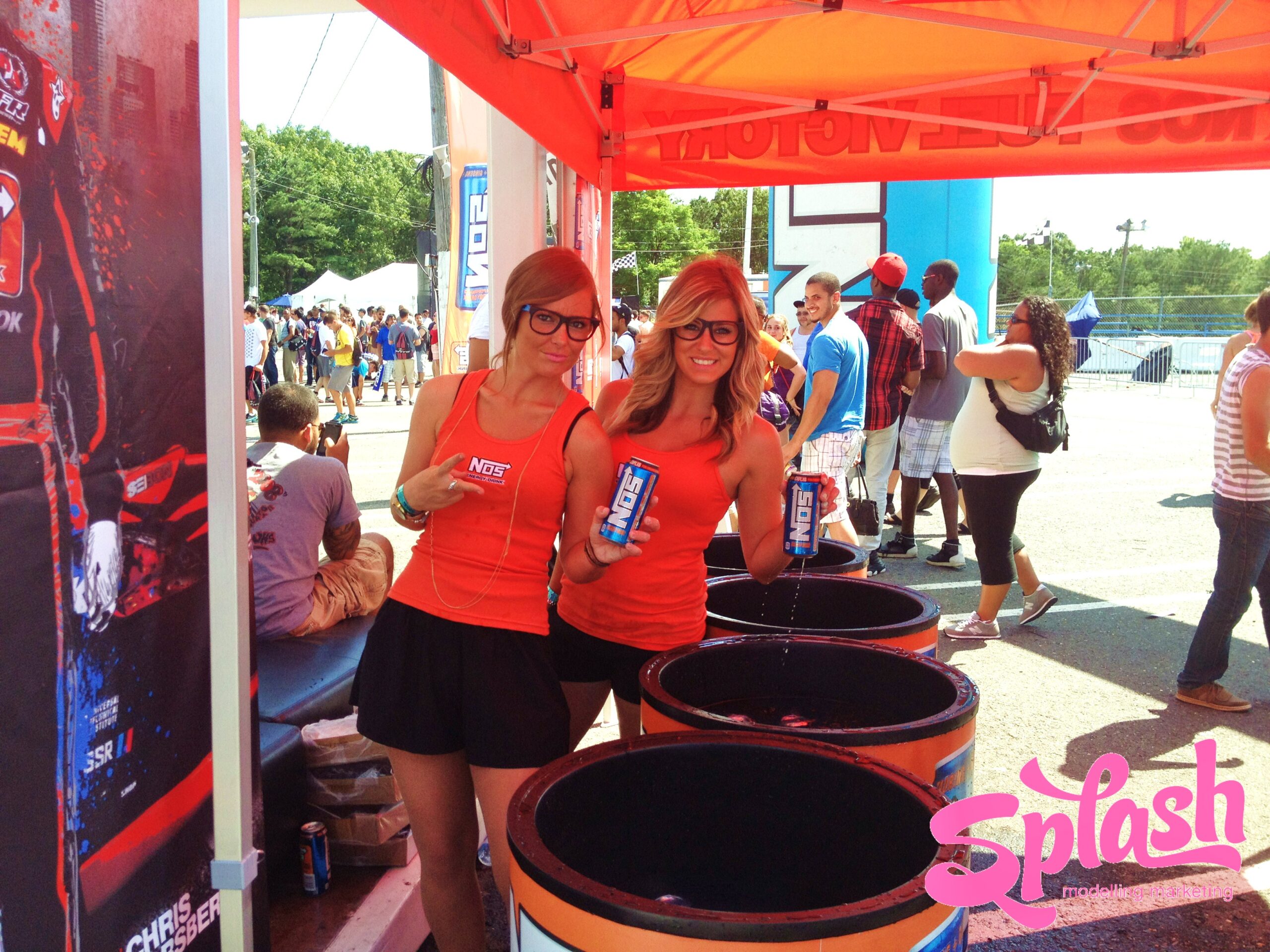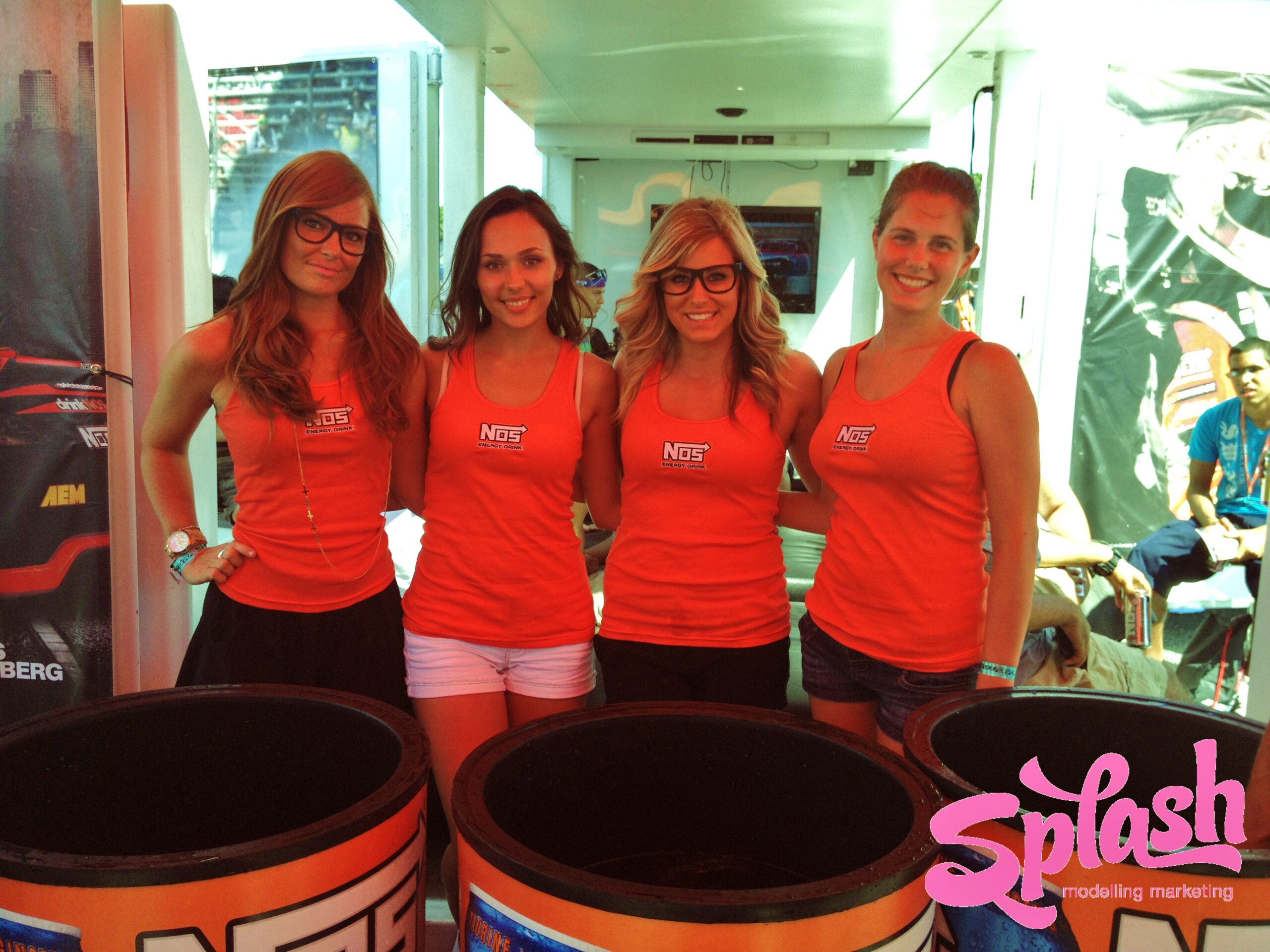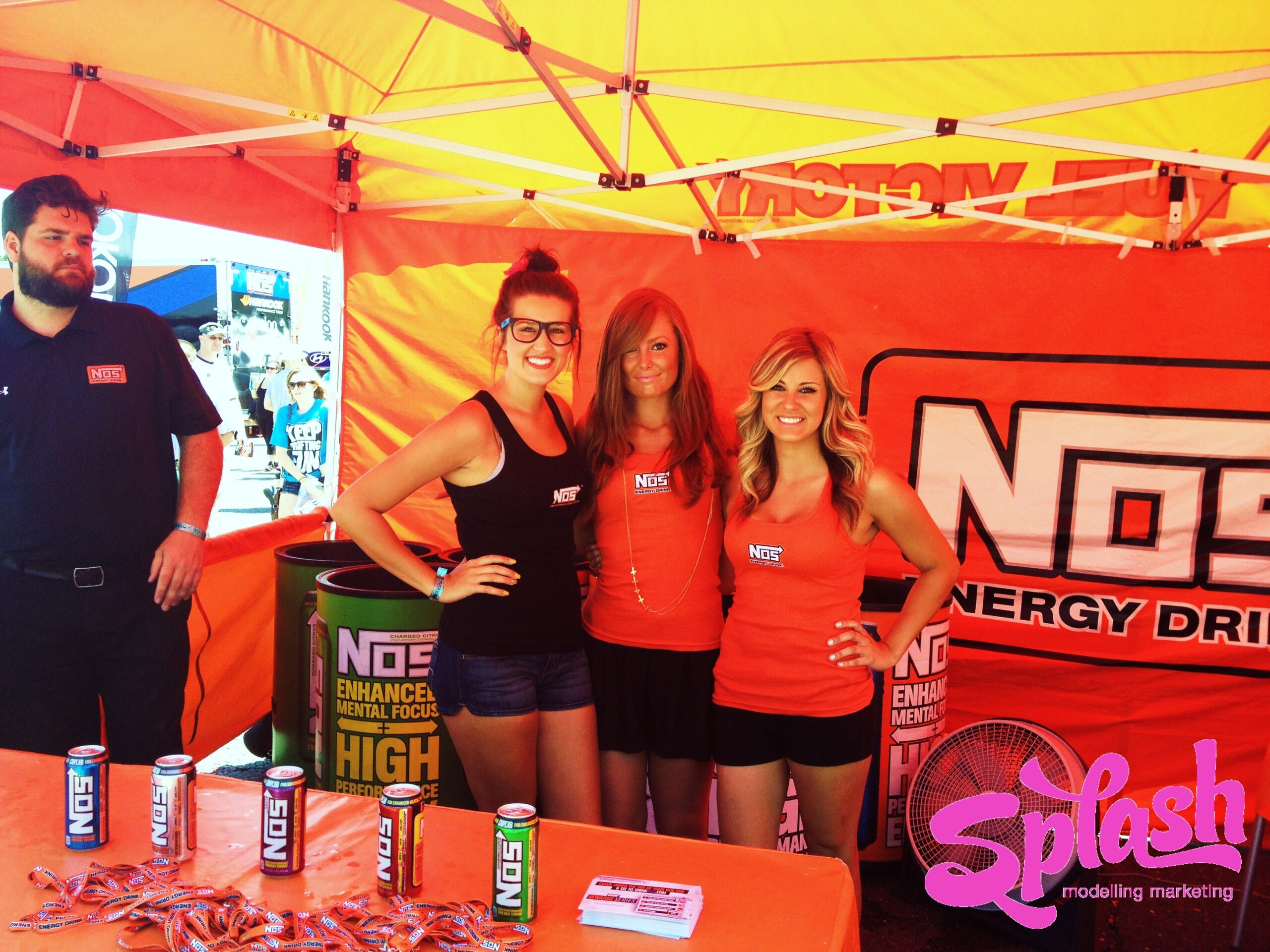 Throughout the weekend the Splash MM girls attracted a lot of attention in their sexy blue NOS dresses and tight orange tank tops while promoting all 6 invigorating NOS flavours. The girls handed out complimentary NOS drinks, sun glasses, lanyards and other swag in order to convey NOS’ authentic passion for motorsports while keeping the racegoers energized and ready for more action!